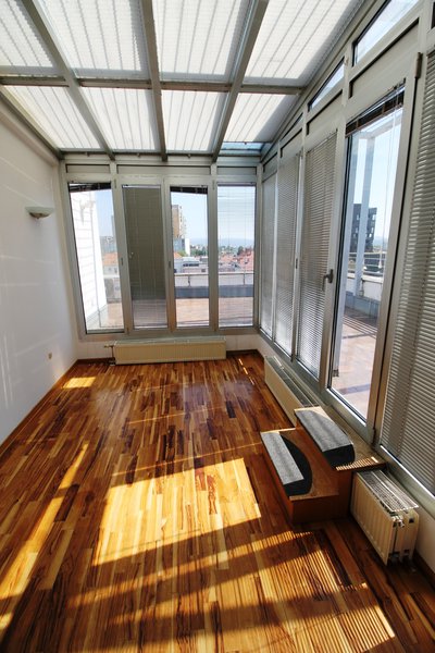 На верхнем этаже есть большое многоцелевое пространство, которые можно перестроить в соответствии с потребностями покупателя, ванная комната с туалетом, небольшая кладовая, зимний сад и большая терраса с открытым видом на Любляну. Отопление квартиры осуществляется на тепловод, все счетчики индивидуальны, расходы рассчитываются в соответствии с ежемесячным потреблением. Квартира подходит для людей, предпочитающих просторность, индивидуальность, спокойствие и прекрасный вид на Любляну и прилегающие к ней районы. Квартира готова к быстрому заселению, возможно, для более требовательных клиентов необходим мини ремонт.