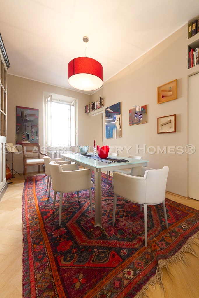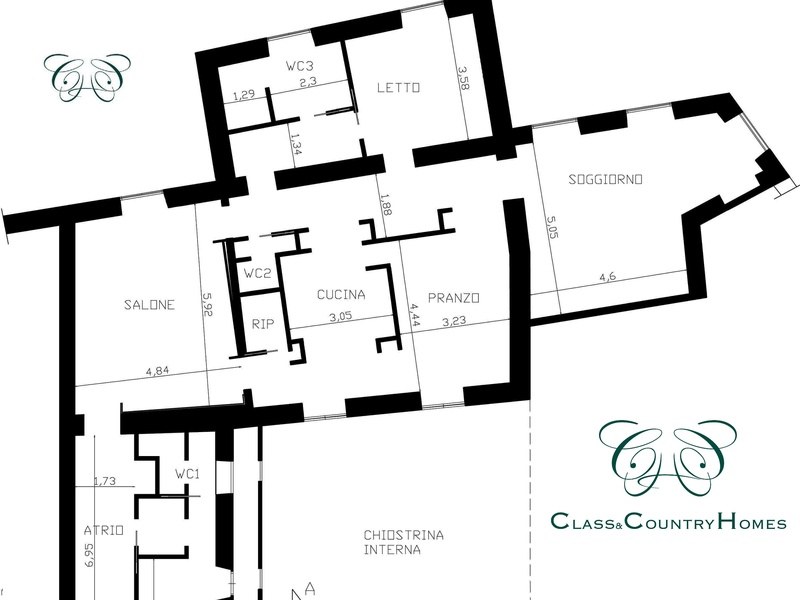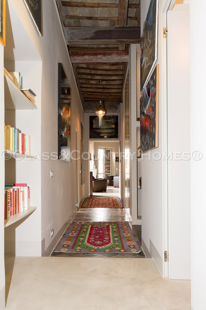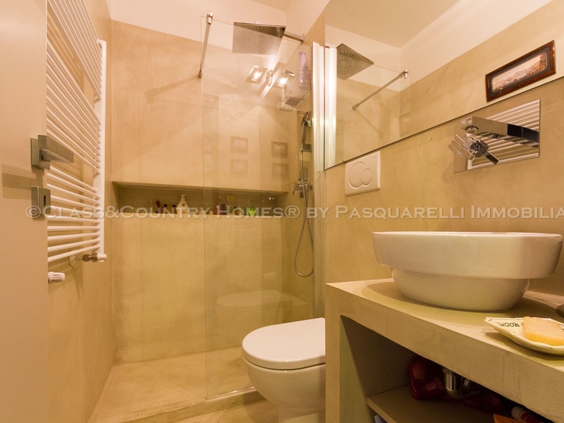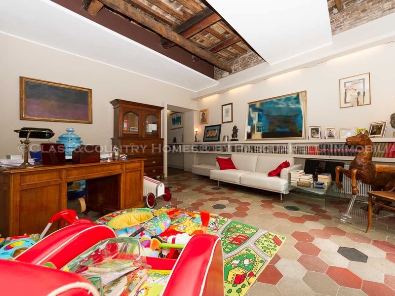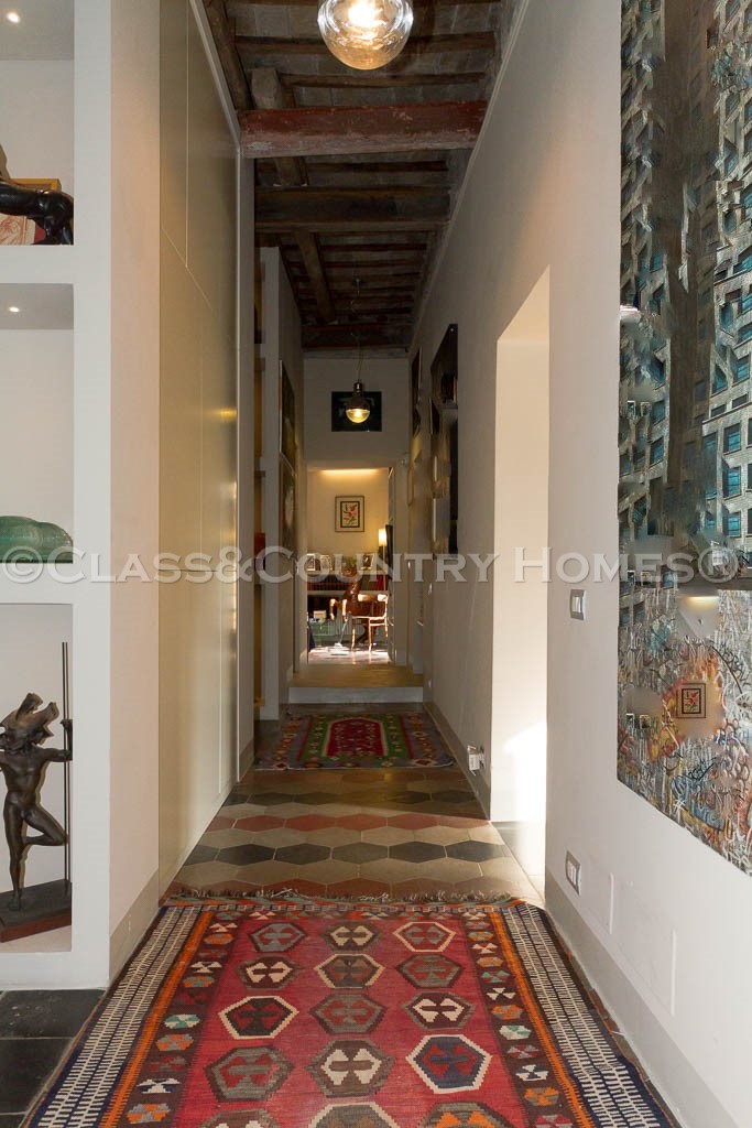 В последнем ремонте архитнкторам  удалось сочетать использование новых материалов со старыми характерных особенностей, таких, как высокие потолки с деревянными балками и полом в стиле cementina . Квартира оснащена центральным отоплением. Имеется также  удобный и сухой погреб