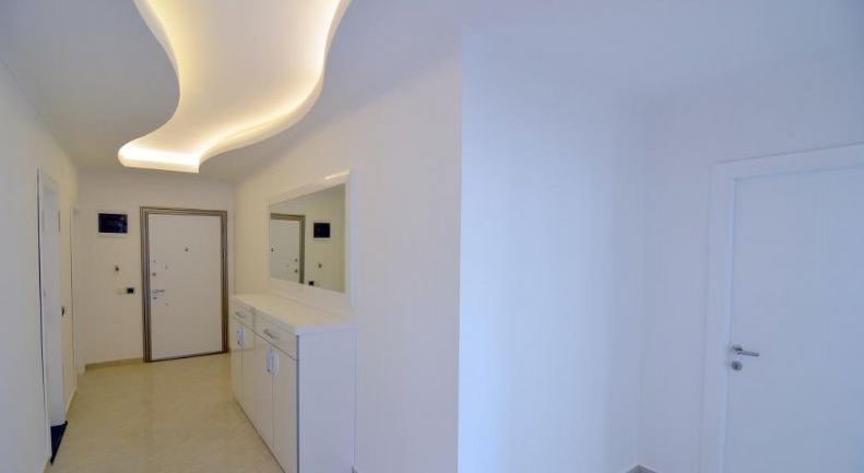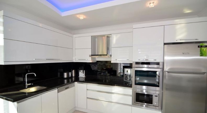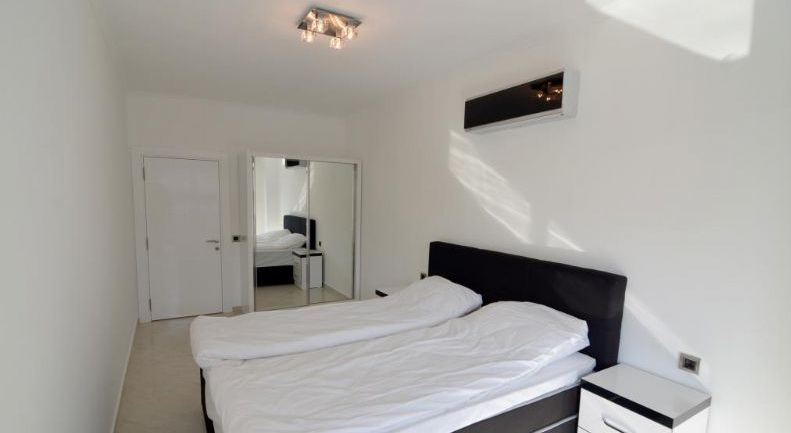 Все квартиры имеют современную стильную внутреннюю отделку, керамическая плитка на полу высшего качества, все полы с подогревом, стильная встроенная кухонная мебель с глянцевыми поверхностями, гранитная столешница, двойные стеклопакеты на окнах, современная тепло и звукоизоляция, полностью оборудованная сантехникой ванная комната, сигнализация, видеодомофон, автоматическая потолочная подсветка во всей квартире.