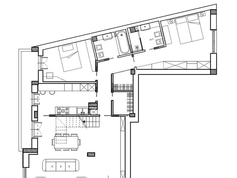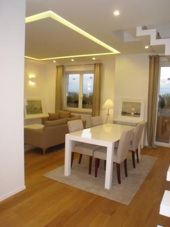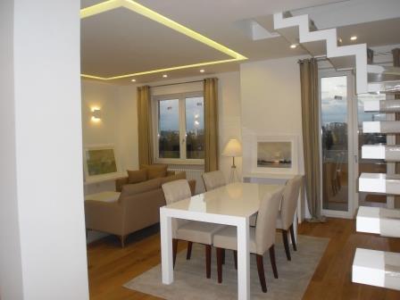 Квартира состоит из большой гостиной с лестницей, ведущей на супер-пентхаус этаже, кухня полу-жилой, две спальни и с шкафы, шкафы и одна с ванной комнатой, вторая ванная комната, зона отдыха и ванная комната на первом пентхаусе и доступа с большим панорамной террасой.