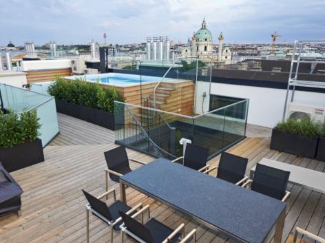 Продается пентхаус с видом на Карлсплац в Вене, федеральная столица Австрии и одновременно одна из девяти федеральных земель Австрии, расположенная внутри другой земли, Нижней Австрии. Жилая площадь 278 квадратных метров. Это один из лучших пентхаусов в Вене; с внутренним лифтом, бассейном с видом на на знаменитый "Karlsplatz", 3 спальни с ванной комнатой с гардеробной и около 151 квадратных метров , терраса. Большая современная лестница ведет на верхнюю гостиную-столовую. Терраса защищена от ветра стеклянными панелями, откуда открывается чудесный вид на Карловой площади. Имеется платная парковка в доме, тренажерный зал, и обслуживание в отеле также могут быть использованы круглосуточно. Пентхаус расположен в 1-м районе Вены, в непосредственной близости от Венской государственной оперы, где дополнительно всемирно отмечают известный оперный бал ежегодно. Эта роскошная квартира находится всего в нескольких метрах от станции метро линии U1, U2 и U4, а также трамвайные / автобусные маршруты. Многочисленные магазины, супермаркеты и рестораны расположены в непосредственной близости, в нескольких минутах ходьбы.