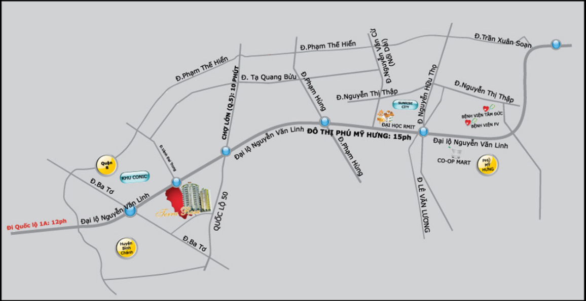 Terra Rosa condo located on main road of Nguyen Van Linh. The unit area is 79.5m2, 2 bedrooms, 2 bathrooms, living room, kitchen. On 12th floor. For more details please visit http://lysatrieu.wix.com/terra-rosa