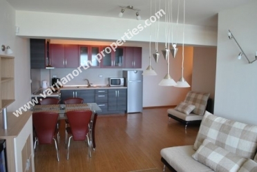 Квартира на первой линии около Ботанического сада в Балчике. Апартамент находится в элитном комплексе в непосредственной близости Ботанического Сада и Дворца Румынской княжны, в 40 км от Варны и аэропорта, в 18 км от Каварны, в 6 км от гольф поля. Комплекс построен в 2008 году. Квартира на 5 (последнем) этаже массивного здания. Жилая площадь 75 кв.м, состоит из огромной гостинной с кухней, 1 спальня, ванной с туалетом, большого балкона с видом на море. Квартира в идеальном состоянии, обставлена, готова для проживания: плитка на полах всех помещений, сантехника в ванной, окна PVC, качественная отделка. Великолепный вид на море!