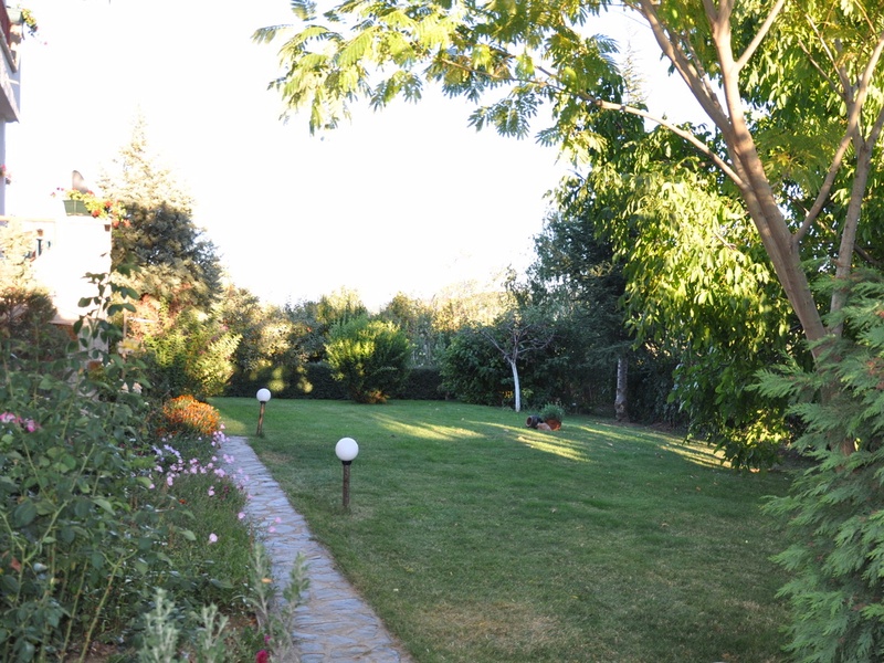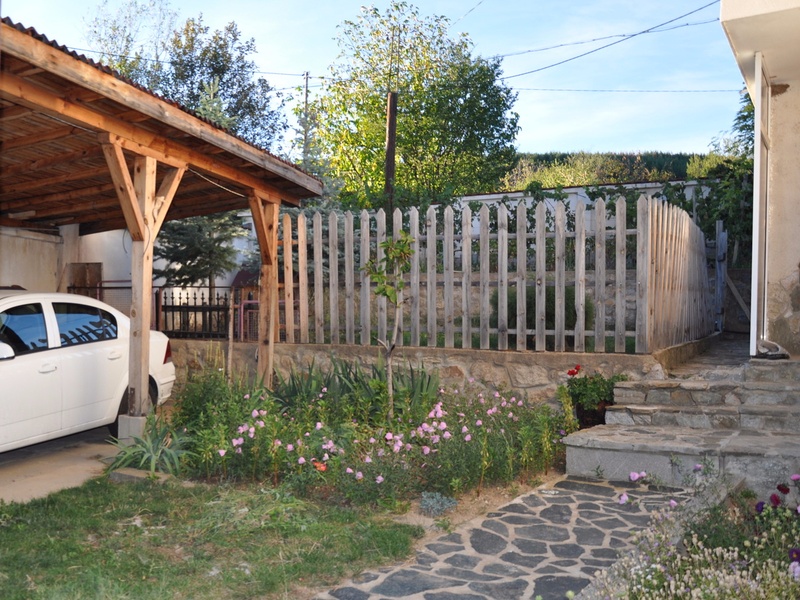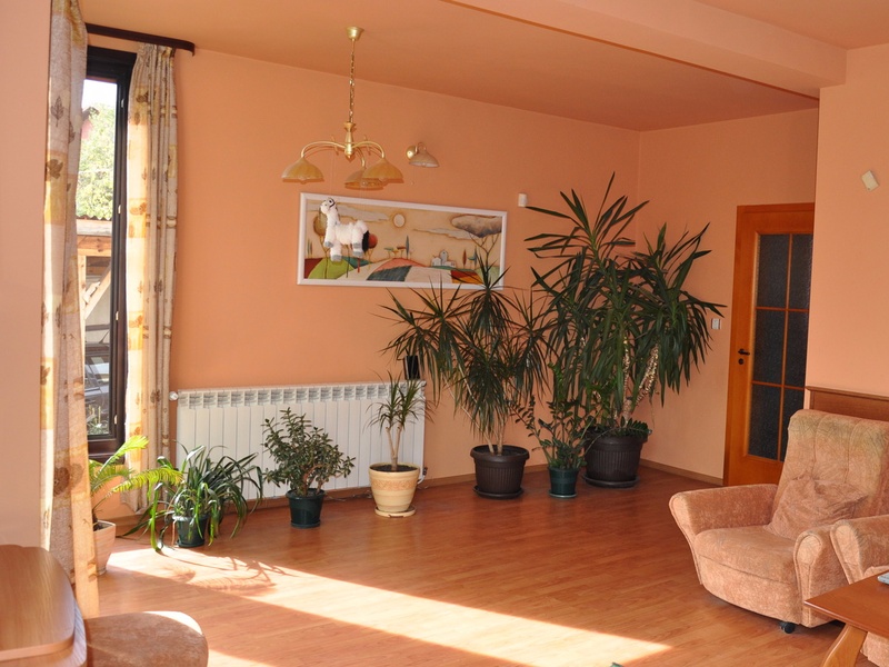 The house is situated in the suburbs of Kyustendil 2.5 km from the town . The placement of the house is : Basement: 2 rooms / 1st floor: large living room with panoramic windows and fireplace, dining room, kitchen, bathroom and a separate room / 2nd floor: large room with fitted wardrobes, 4-bedrooms and bathroom. The house has solar panels on the roof, with its own water and central heating with wood. The yard is terraced and has a barbecue, a rock garden with a small waterfall, garden and many types of fruit trees, ornamental trees and shrubs. There is also a garage for 3 cars. The house is fully furnished .The view is amazing and to Osogovo and Kyustendil Valley.