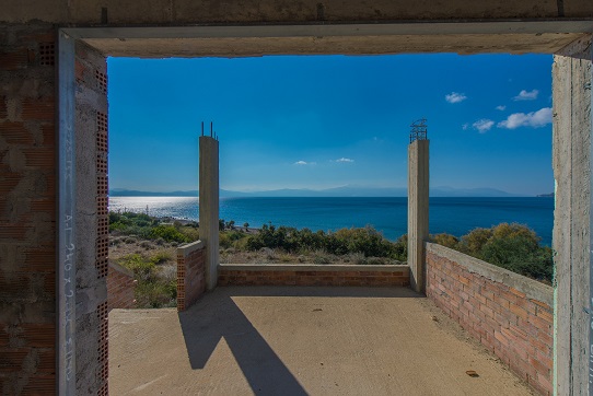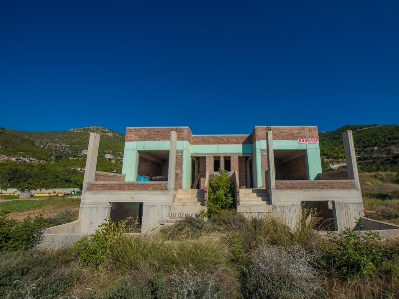 Дом расположен в 50 метрах от Коринфского залива Ионического моря с прекрасным видом на лес и море. Лутраки является туристическим городом, который известен своими минеральными источниками и самым крупным казино на Балканском полуострове. Частично построенные два дома, каждый площадью 80 м2. Общий размер площади участка и земли 1782 м2. Дом находится за городом, уединенная месность рядом с хвойным лесом. Идеально подходит для мини-отеля. Местоположение участка 38°00'22.7"N 22°55'38.7"E