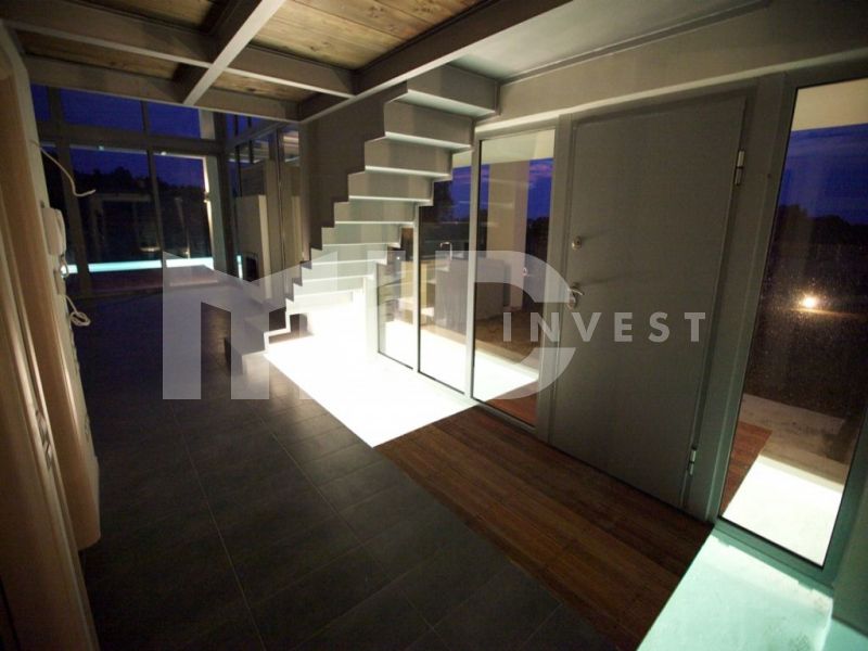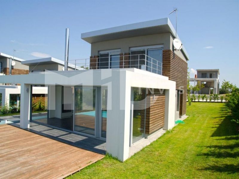 Предлагаем вам красивую виллу площадью 140 кв.м. выполненную в стиле хайтек-минимум цвета, минимум линий, минимум стен и перегородок. Вся фронтальная часть здания состоит из стекла. Дом притягивает своей лёгкостью и прозрачностью. Здесь есть всё необходимое 3 спальни, зал с камином, 2 ванные комнаты. На участке с ландшафтным дизайном площадью 1100 кв.м. есть бассейн с подсветкой, большая веранда, барбекю и место для парковки. С больших балконов открывается прекрасный вид на море.http://www.midinvest.gr/ru/Халкидики-Кассандра-Вилла-794/