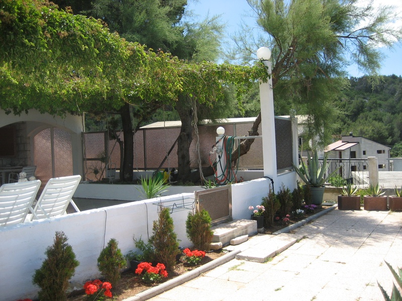 The biggest advantage of this apartment is the house with only two completely separate apartments and a parking space and, Mediterian climate and location. Experience the unique atmosphere with a large terrace consisting of three parts ( 1. loggia – Covered part , 2. part of the natural sunshade and 3. sunny part with the garden, driveway and parking ). Barbecue is driven , large one on gas and can be used in either the open or the closed part of the terrace .