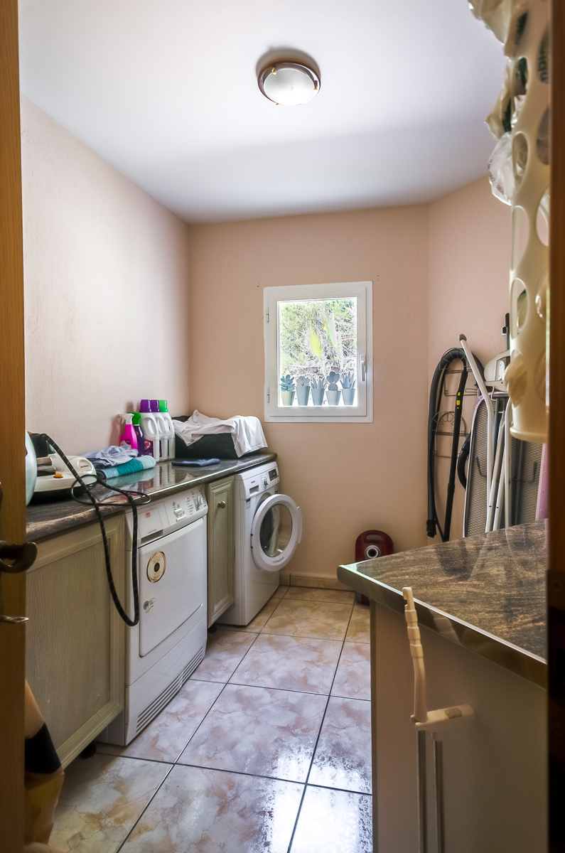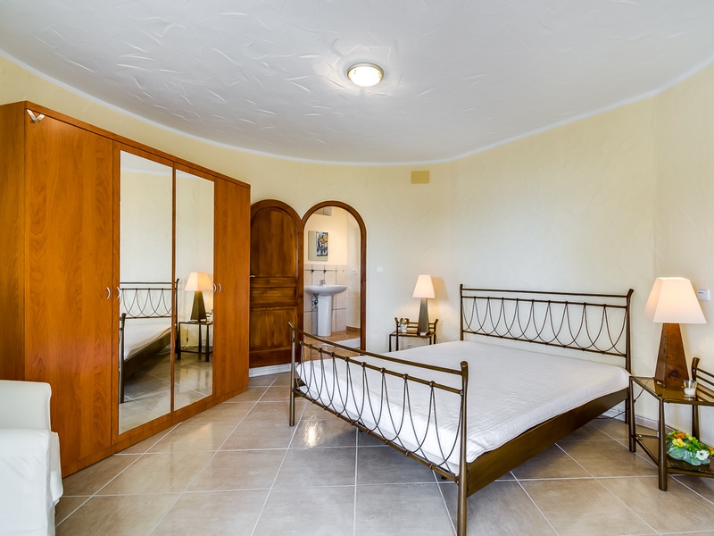 Главный дом двухэтажный с отдельными входами. На втором этаже прихожая с гостевой ванной комнатой, большая гостиная с крытой террасой, большая кухня с кладовой, спальня с террасой, гардеробная, ванная комната. На первом этаже две отдельные комнаты для гостей, с собственными санузлами и тенистыми террасами, кладовая, подвал и большой гараж.