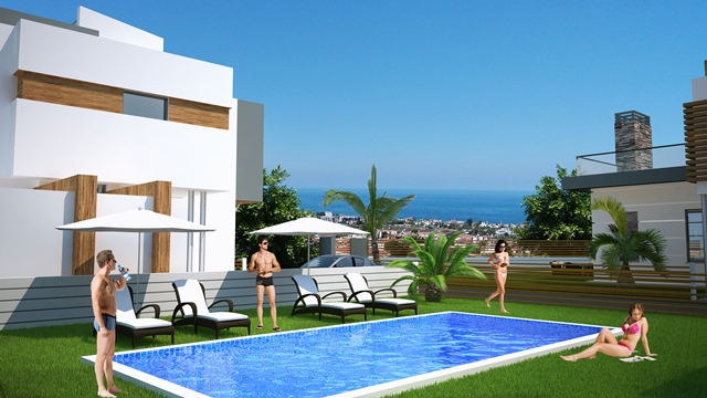 ВЕЛИКОЛЕПНЫЕ ВИЛЛЫ КЛАССА ЛЮКС НАХОДЯТСЯ В 5 МИНУТАХ ОТ САМОГО ПОПУЛЯРНОГО ПЛЯЖА СЕВЕРНОГО КИПРА В АЛСАНДЖАКЕ ВЕЛИКОЛЕПНЫЙ ВИД НА МОРЕ И ГОРЫ ЕСЛИ ЕСТЬ РАЙ НА ЗЕМЛЕ ТО ЭТО КИПР! • Площадь 230м2 • 3 спальни (1 спальная комната внизу) • 3 туалета+ванна (1 туалет внизу) • Камин • На верхнем этаже великолепная терраса с барбекю • Вид на горы и море • На верхнем этаже паркет • Крытый гараж