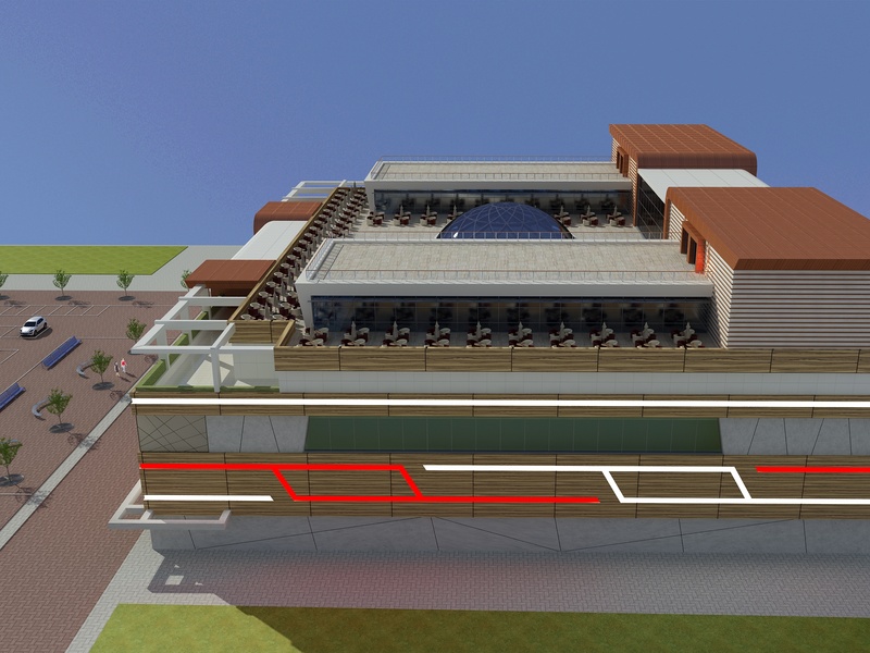 Die Gesamtfläche des Einkaufszentrums beträgt ca. 20.000 m2, es hat vier Stockwerke und ein zusätzliches Stockwerk auf dem Dach mit Restaurants und der Sommerterrasse mit Panoramablick, wo Sie eine gute Zeit im Kreise Ihrer Familie oder Freunde haben können. Auf den anderen Stockwerken befinden sich viele Geschäfte und kleine Cafés. Außerdem ist das Filmtheater mit drei Saalen und das Kinderunterhaltungszentrum geplant.