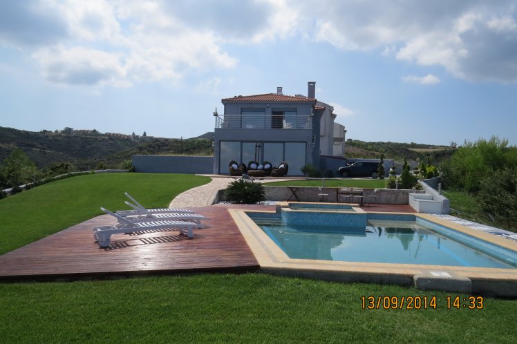 Предлагает снять дом в Греции для незабываемого отдыха в этой солнечной стране. Дом расположен на возвышенности с великолепным видом на море, на зеленом участке 900 м. с бассейном и открытой стоянкой для автомашин на 3 места.  До посёлка с развитой инфраструктурой и многокилометровым песчаным пляжем Полихроно 800 м. Первый этаж дома состоит из просторной гостиной с кухней, спальни (2 кровати), душевой комнаты и кладового помещения. На втором этаже расположились две спальни(двухспальные кровати), ванная комната и огромный балкон с изумительно красивым видом на море и бассейн. Количество спальных мест 7. Дом полностью меблирован в красивом стиле, оснащен бытовой техникой (телевизоры в 2-ух комнатах, кухонная мебель с бытовой техникой фирмы BOSCH, 2 больших холодильника, посудомоечная и стиральная машина, духовка и микроволновка, спутниковое телевидение, солнечная батарея, кондиционеры  и т.д.).