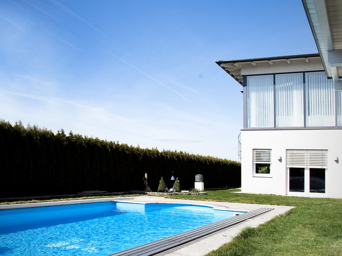 СОВРЕМЕННАЯ ВИЛЛА НЕДАЛЕКО ОТ ВЕНЫ Объект отлично подходит как и для большой семьи, так и для бюро архитектора, консультанта, адвоката и т.д., а также для врача, кометического салона и проч. Жить и работать под одной крышей! Жилая площадь дома прим. 475 кв.м. Вилла имеет большой салон с открытым камином, с отдельным входом бюро, СПА с бассейном, джакузи и сауной, гараж, дополнительную парковку под крышей. Земельный участок ухоженный, имеет площадь 1.200 кв.м