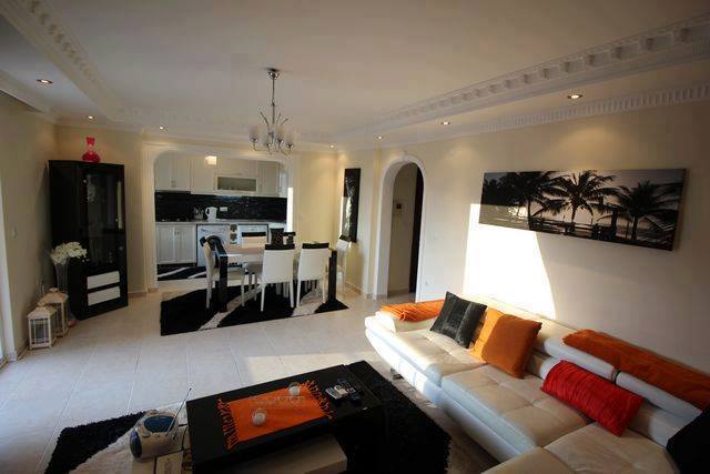 Продаются 2+1 апартаменты Махмутлар/ Алания! 10ти этажная резиденция находится на улице Ататюрк в 300 м от пляжа. Апартаменты расположены на 6том этаже, 120 м^2, полностью укомплектована с Американской кухней. Окна выходят на южную и северо-западную сторону. 2 спальни, 2 балкона, 2 открытых и1 крытый бассейн, Сауна, Хамам и Фитнесс-зал. Рядом с Резиденцией есть магазины, аптеки и автобусные остановки. ЦЕНА: 75 000 EUR