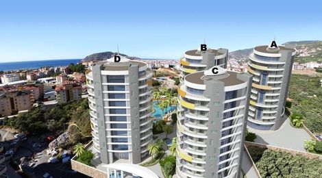 Этот жилой комплекс состоит из 4 блоков и представляет собой современные городские апартаменты. Каждый блок имеет 9 этажей; в блоке А на этаже расположено 5 квартир, в блоках B, C и D по 4 квартиры на этаже. Комплекс был спроектирован с учетом всех малейших деталей и для вашего комфорта: большая территория отведена под сад с великолепными тропическими растениями и ландшафным дизайном, вы и ваша семья сможете пользоваться всей инфраструктурой комплекса, а с балконов своего нового дома вы будете любоваться потрясающими видами Средиземного моря, Аланийской крепости и гор!