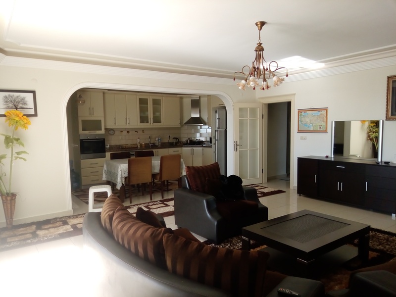 Алания/Махмутлар 2+1 89000уе 120м2 6эт\12эт здания. До моря 650 м До центра 500. 2 спальни,гостинная с кухней, 2 ванные комнаты, гардеробная, два больших балкона. Полная меблировка. В комплексе с зимним крытым басеином и летним на свежем воздухе. Светлая, уютная, с изумительным видом на море и горы.