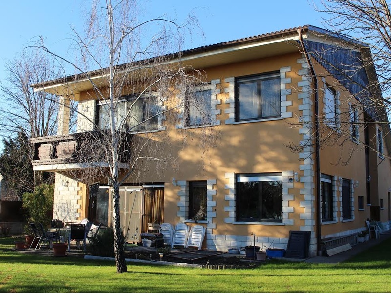 В 21 районе Будапешта, на Чепеле, на тихой спокойной улице продается большой дом 350 кв.м, 9 комнат и участок земли 845 кв.м. На первом этаже большая гостиная с камином и выходом на террасу, столовая, кухня, кладовка, туалет и квартира 80 кв.м с отдельным входом, которая состоит из 3-х комнат, кухни, ванной. На втором этаже 5 комнат, 3 из них используются как спальни для детей и своя ванная комната, 1 большая спальня для родителей с гардеробной и ванной, 1 комната используется для тренажерного зала, 2 балкона. В подвале бойлерная. В наличии коммуникации: вода, электричество, газ, канализация, сигнализация, интернет, телефон, кондиционер. Стены кирпичные, на крыше черепица, окна стекло пакеты, жалюзи, дом просторный с высокими потолками. Приятный, закрытый со всех сторон двор, зеленая лужайка, большие деревья, декоративный пруд. Район обжитый, удобный для проживания, до центра Будапешта 20 мин, до аэропорта 30 мин на машине. Цена 347 000 евро