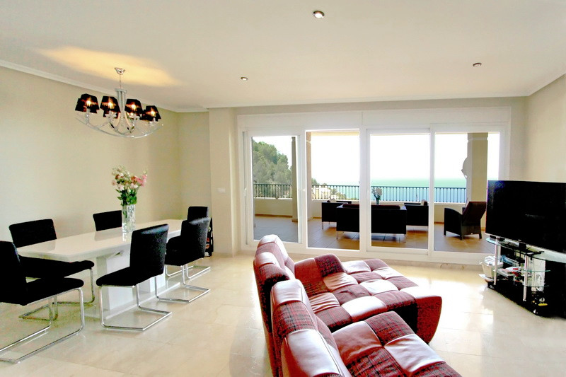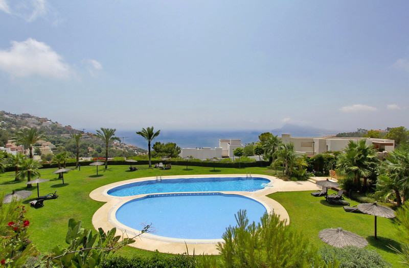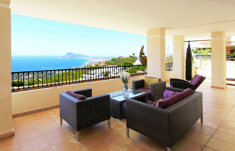 Эффектная квартира в Испании с панорамным видом на море в охраняемой урбанизации Алтея Хиллс (Коста-Бланка).