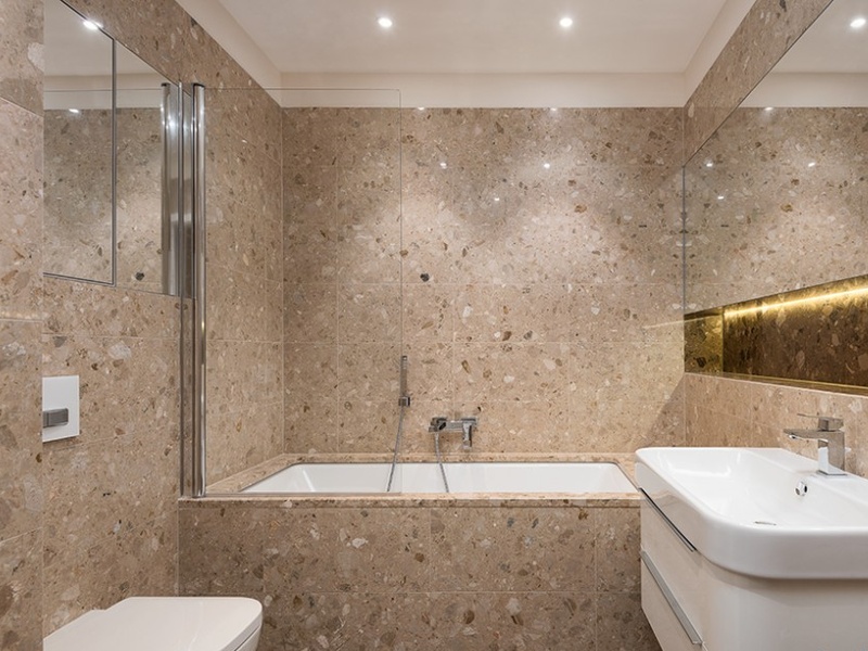 Квартира состоит из ориентированной на южную сторону гостиной с кухней, ориентированной на север спальни с балконом с видом на тихий внутренний двор, далее ванной комнаты, гардеробной и коридора. Квартира будет отремонтирована на высоком уровне, который включает в себя такие материалы, как итальянский мрамор, дубовые полы и первоклассную сантехнику.