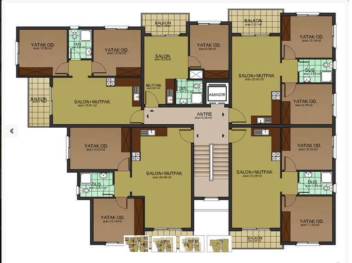 Квартиры 1+1, общей закрытой площадью 50 кв.м.
