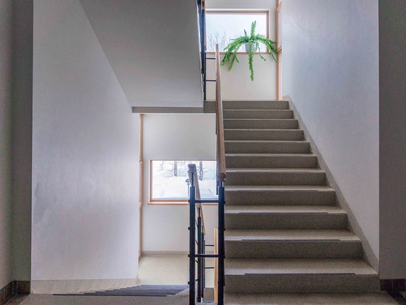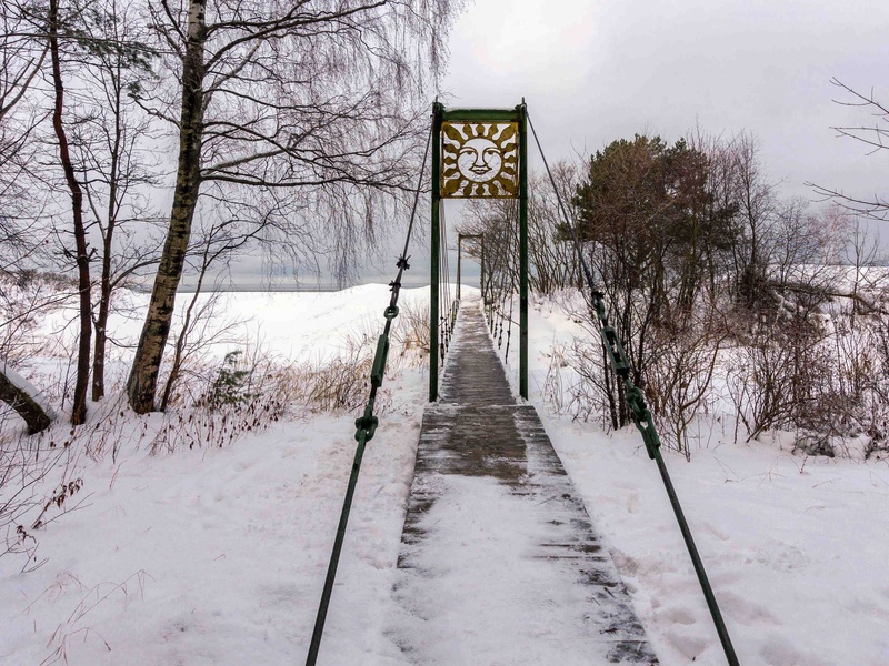 Четырехэтажное здание с надстройкой на крыше и подземной/надземной автостоянкой. В просторной зеленой зоне на прилегающей территории обустроены огороженная детская площадка и сад. Дом расположен в излучине реки Петерупе, которая отделяет прилегающую территорию от дороги и окружающей территории. Море на расстоянии 400 м (по пешеходному мостику через Петерупе). Объект окружен частными домами.