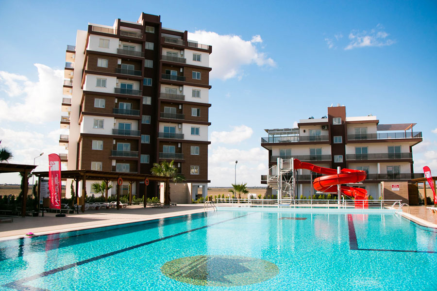 Резиденция «Роял Сан» - это крупномасштабный проект, располагающийся на 28 гектарах земли и состоящий из 3 этапов, строительство одного из которых уже подходит к завершению. Проект включает в себя семь различных типов квартир и домов, такие как: квартиры-студии, двух и трехкомнатные квартиры с террасами и без них, таунхаусы с двумя и тремя спальнями.