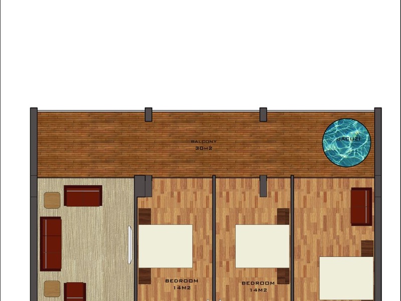 Люкс апартаменты 3+1 составляют 159 кв.м. и + на террасе есть возможность установить даже джакузи.