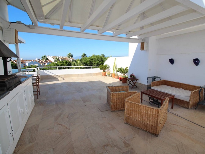Потрясающий апартамент-дуплекс находится в престижной и спокойной зоне "Rio Real". Апартамент, площадью 230м2 имеет две спальные с выходом на террасу с панорамными видами на горы и море, площадью 10м2 и две ванные комнаты, одна из которых en-suite, огромную гостиную с камином, имеющую выход на просторную и светлую остекленную террасу, площадью 25м2 с видами на бассейн и сад, полностью укомплектованную современной бытовой техникой кухню. На втором этаже дуплекса располагается огромная терраса, площадью 100м2 с частным подогреваемым бассейном- джакузи, отдельной зоной барбекю и солярием под открытым небом.