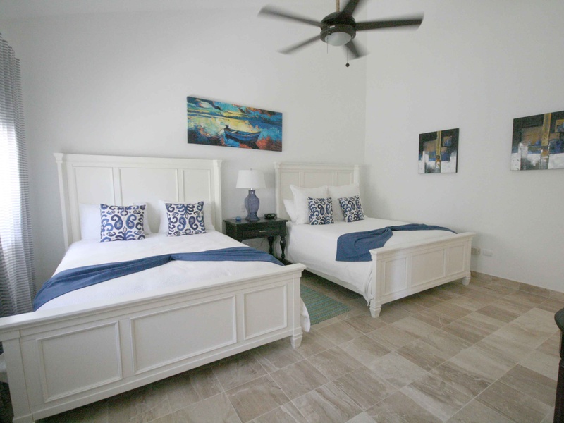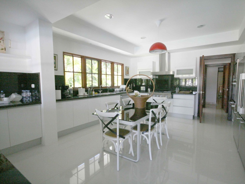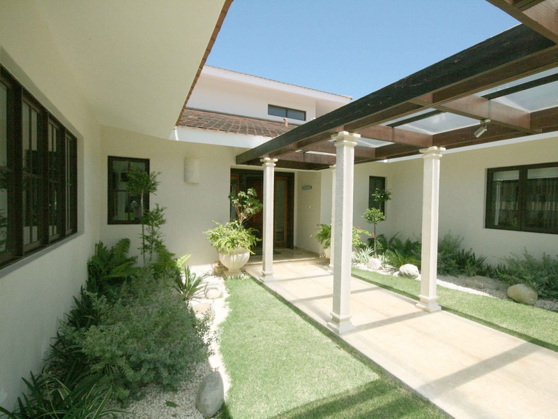 Четыре спальные комнаты, каждая со своей ванной и гардеробной комнатами, гостевая зона, обеденная зона, гостевой санузел, кухня, прачечная зона, комната для прислуги со своим санузлом, большая крытая терраса, бассейн, зона барбекю, крытая парковка для двух автомобилей.