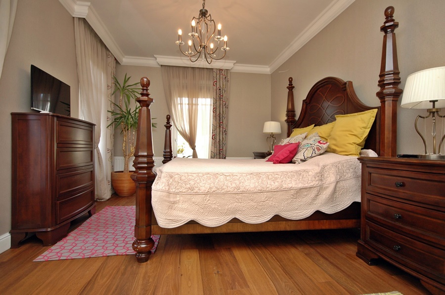Комнаты с паркетом, в других помещениях – керамическая глазурованная плитка.