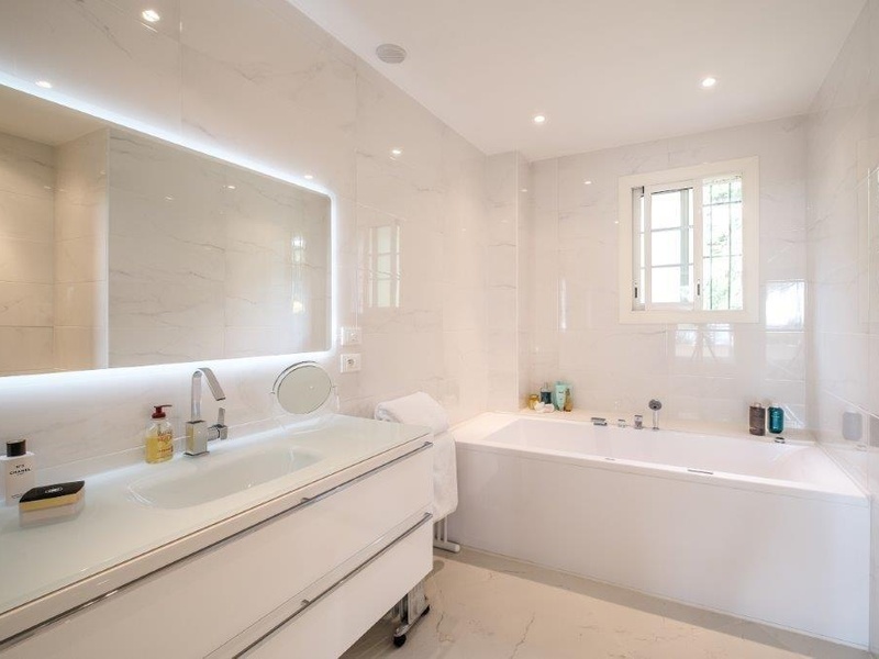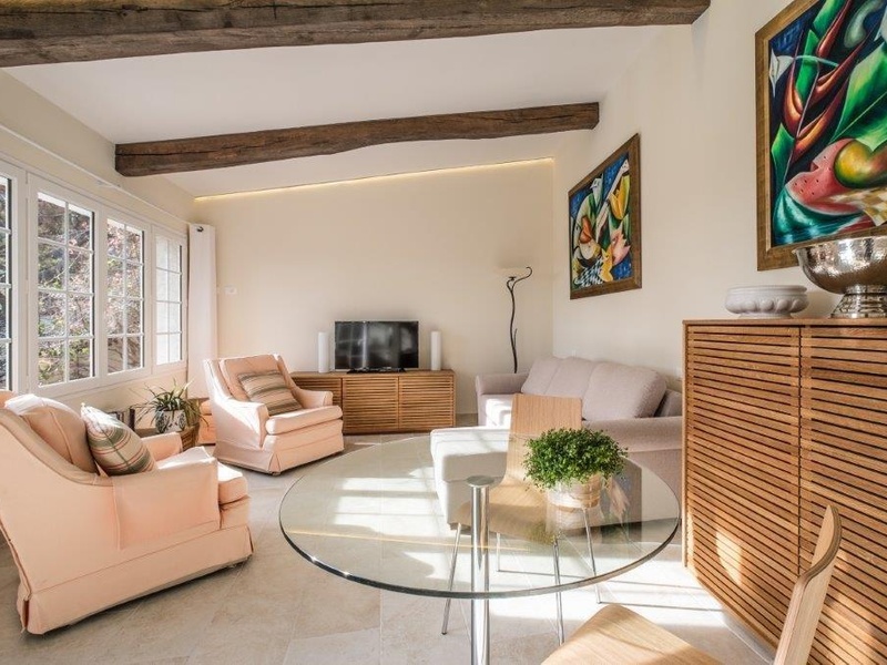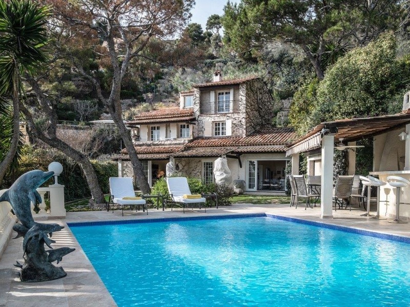 Эта роскошная, очень уютная вилла со вкусом оформленный и тихий дом для отдыха, расположен в одном из самых элитных и безопасных раенов на Лазурном побережьи. Одним из значительных преимуществ является то, что дом никогда прежде не сдавался в аренду. На первом этаже дома расположен рабочий кабинет с оргтехникой, гостевая уборная, просторная гостиная,с французскими дверями, открывающимися в сад с потрясающим видом на средиземное море, бухту между полуостровом СанЖан Кап Ферра и ВильФранчем. Там же на первом этаже в гостиной есть ниша с библиотекой и камином, телевизор, большая белоснежная современная итальянская кухня отделена от гостиной раздвижными дверями. В доме повсюду оригинальные картины и скульптуры. Столовая и гостиная террасы выходят на сад с безграничным видом на море. Второй этаж включает в себя две спальни и две ванные комнаты, каждая с джакузи. Основная спальня имеет террасу с зоной отдыха с видом на море, идеально подходит для утреннего кофе с круассанами или бокалом вина перед сном. Спальня на третьем этаже также имеет террасу с потрясающим видом на море, отдельную ванную и душевую комнату и маленький тренажерный зал с парой тренажеров. Большая зона бассейна включает в себя пулхаус и летнюю кухню с большим холодильником, винным холодильником на 14 бутылок вина, плитой и традиционной духовкой для пиццы, встроенным австралийским газовым барбекю. Также имеется раковина и рабочая зона, барная стойка с барными стульями, потолочный вентилятор и навес а так же открытый душ. Отдельный гостевой дом 37 м.кв. в провансальском стиле имеет итальянские каменные полы и окна с видом на бассейн и на море . Домик состоит из обеденной зоны с круглым столо и стульями, зоны отдыха с раскладывающимся большим диваном и двумя креслами, маленькой кухоньки а так же душевой с туалетом. Вилла находится в окружении 14-и соток ландшафтного сада и газонов. садовая территория включает в себя более 100 видов зрелых кустарников, деревьев и трав. Газоны и сад являются 100% био (без гербицидов и пестицидов). Собственность находится под защитой внутренней и внешней сигнализации. Есть гараж для двух полноразмерных автомобилей. Все комнаты в доме и гостевом доме оснащены центральным кондиционером воздуха. Есть широкоформатные телевизоры в библиотеке, основной спальне и гостевом доме а так же имеются и интернет-телефоны в доме и гостевом доме с доступом звонков по всему миру. Все телевизоры обслуживаются Apple TV, местное французское телевиденье, а так же телеканалы на русском, английском, испанском, итальянском, немецком, японском и китайском языках.