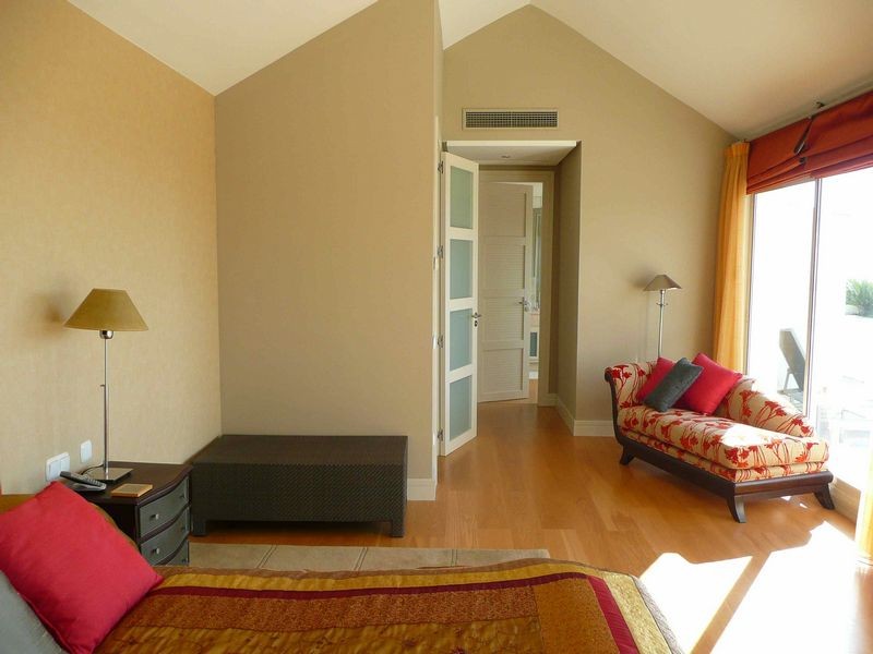 На втором уровне находится главная спальня с большой примерочной со слуховым окном (что дает возможность использовать гардероб как кабинет), ванная с jacuzzi, отдельным душем и широкой террасой, открытой и с эффектными видами.