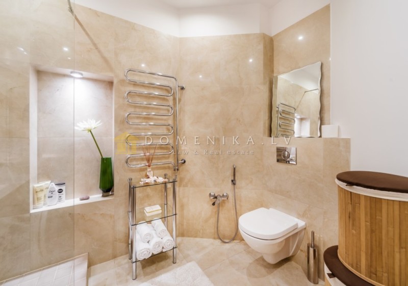 Продается трехкомнатная квартира в центре Риги. Квартира находится на пятом этаже в шестиэтажном доме. Полностью мебелированная. Отремонтированая лестница. Из окон открывается вид на зеленый двор. Развитая инфраструктура.. Высокие потолки, деревянные полы, качественные шторы во всех помещениях, современные световые объекты. Индивидуальное газовое отопление. Новый немецкий газовый котел. Ванная комната с большим зеркалом и душевой кабиной. Высокое качество двойных дверей. Сигнализация.