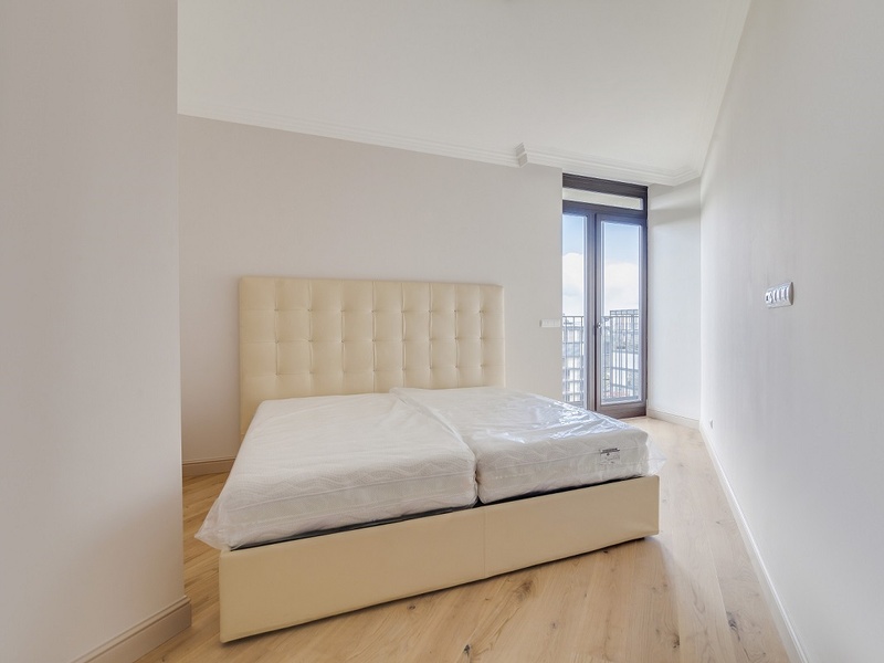 Квартира на 14 этаже, общей площадью 155 м2, жилой 133,8 м2, состоит из 3 спальных и 2 ванных комнат, просторной гостиной с кухонной зоной, хозяйственного помещения, террасы 21,5 м2. Так же в стоимость квартиры входит кладовая в подвале 5 м2 и 2 места на парковке.