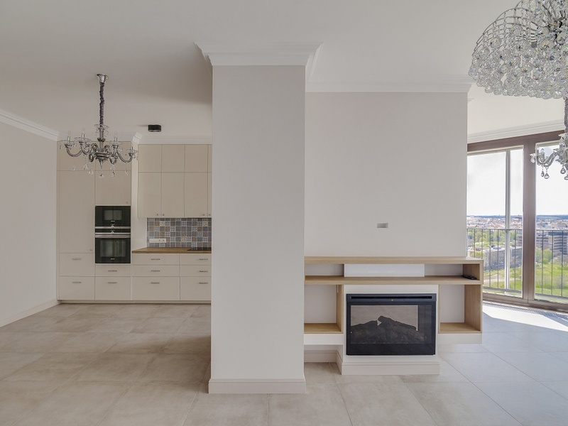 Квартира с высококачественным ремонтом под себя, большими панорамными окнами, высокими потолками, кондиционерами и наружными жалюзями, с новой кухней со всей необходимой техникой, встроенными шкафами. Отопление обеспечивается напольными конвекторами, которые можно легко регулировать, есть также дополнительный подогрев полов в ванных комнатах и отопительные батареи-лесенки.