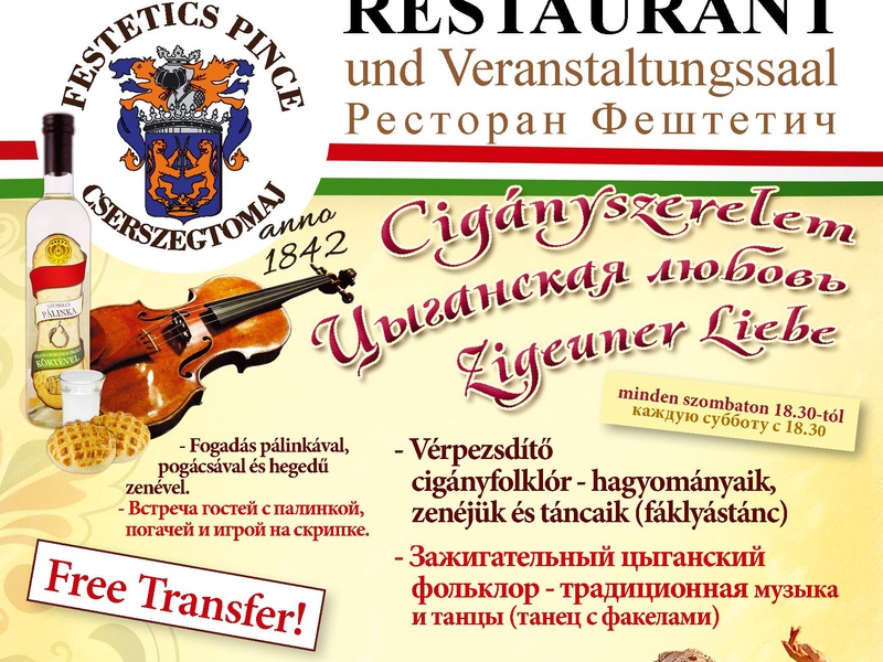 Винный погреб графа Фештетича находится в поселке Черсегтомай, который славится своим вином Черсегифюсереш (Черсегское пряное). Поселок расположен между курортом Хевиз и городом Кестхей - столицей озера Балатон. Погреб построен в 1842 году и представляет историческую ценность. Благодаря интерьеру ресторана и духу развлекательных программ, гости переносятся в атмосферу ушедших эпох. В ресторане "Винный погреб графа Фештетича" есть зал мероприятий на 160 посадочных мест в фольклорном стиле, в верхнем зале расположен ресторан на 70 мест в охотничьем стиле и банкетный зал на 25 мест. В парке около ресторана есть детская площадка, столики и небольшой этнографический музей. Ресторан открыт круглый год Бесплатный трансфер для гостей ресторана. www.festeticspince.hu
