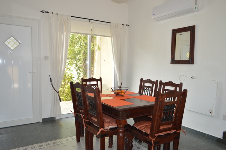 При входе в дом сразу направо находится L-образная Гостиная/столовая.  Налево – лестница на второй этаж и туалет.  Просторная открытого плана кухня укомплектована всей необходимой мебелью и современной бытовой и эл. техникой.
