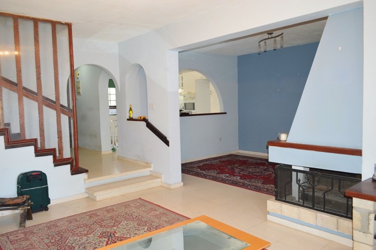 Через главный вход попадаем в прихожую с туалетом и душем. Арочный проем ведет в отдельную кухню. Кухня большая и хорошо укомплектована кухонной мебелью и техникой. Пара ступеней из прихожей ведут в просторную гостиную с камином. Рядом с гостиной расположена отдельная столовая. Арочное окошко из кухни дает доступ к столовой.
