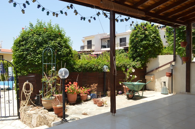 Из гостиной и столовой есть доступ на крытую террасу и в личный сад. Из сада есть выход к коммунальному бассейну, окруженному патио и зелеными насаждениями.