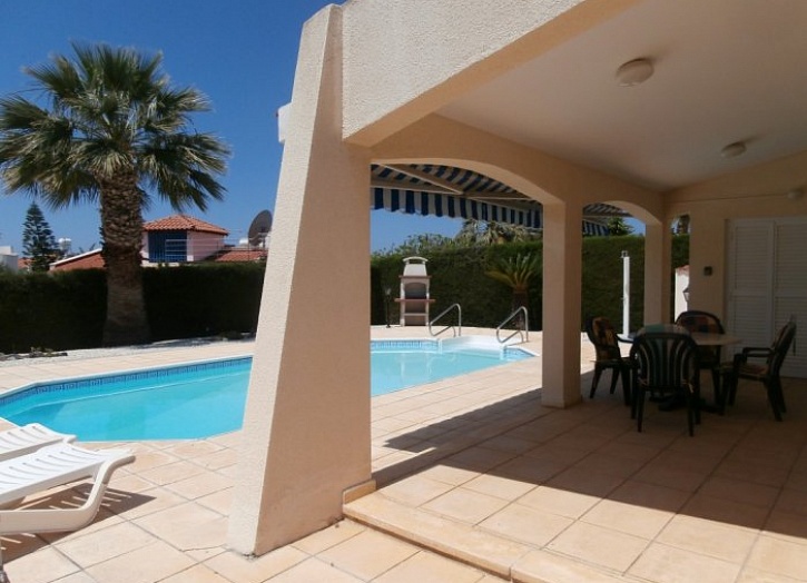 На территории виллы расположены: индивидуальный бассейн, крытая парковка, терраса для отдыха и садик с деревьями и цветами.
