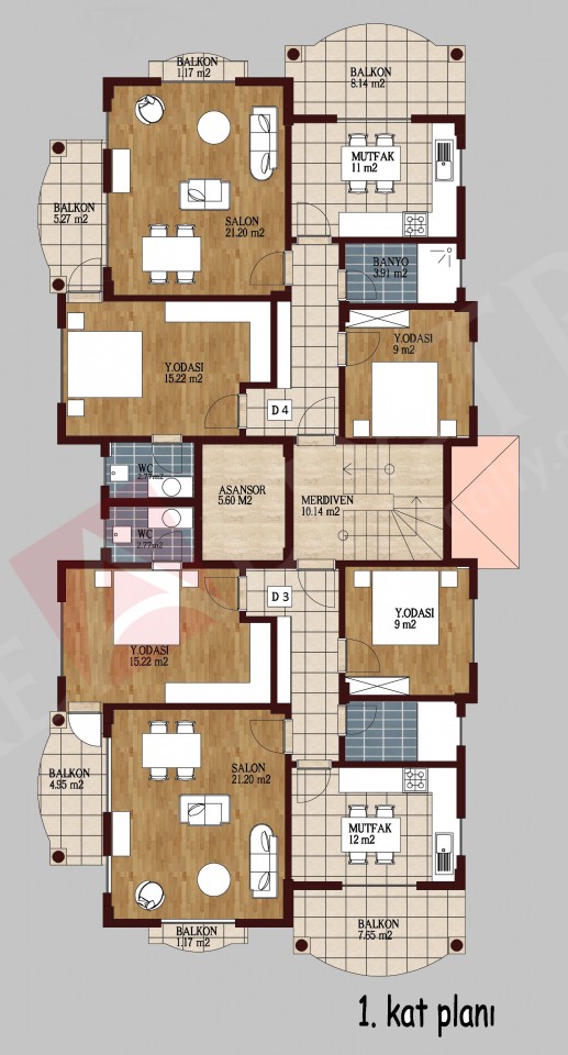 Dalaman, centrally located, exclusive apartments under construction, for sale in modern residential complex equipped with all the comforts, with delivery scheduled for January 2017. The apartments will be built with high level materials, some with south-facing, others north, they will have a balcony and they are on the market at a very affordable price: starting from 130,000 TL