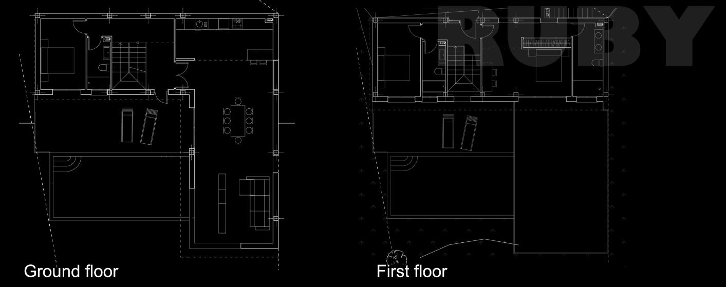 Вилла "Ruby" - это просторная гостиная с панорамным окном, которое наполняет ее светом, большая кухня, 3 ванные комнаты, 2 простых спальни и 1 спальня совмещенная с ванной комнатой.