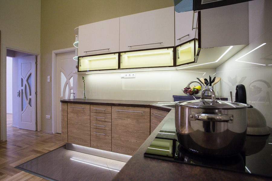 В квартире все кабели, внешние и внутренние двери, сантехника, фурнитура, холодные и теплые покрытия новые. Цена включает в себя требовательную кухонную мебель, изготовленную по размеру (с хозяйственной техникой: плита, вытяжка) Общие расходы 84 евро в месяц.