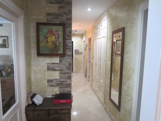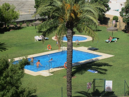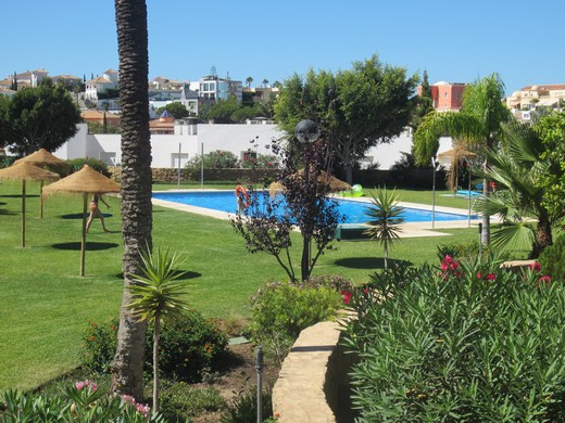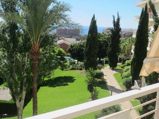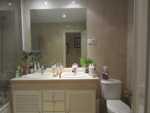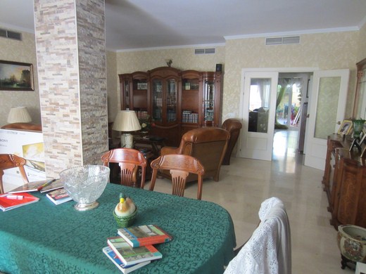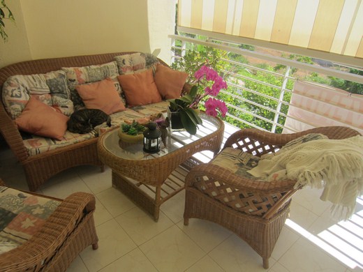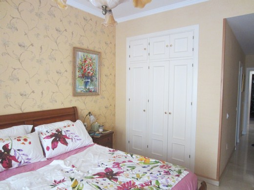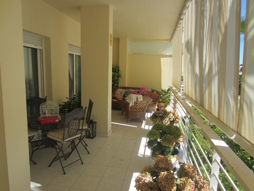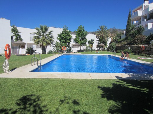 Huge apartment in a luxury golf resort, occupying a space between an east facing 20m2 terrace on a medium floor level with panoramic and sea views and a west-facing big courtyard of 60m2 with flowers and barbecue area and an access from the communal area. It is renovated, has 3 bedrooms, 2 bathrooms (one en-suite), entrance hall with wardrobes, hallway, spacious lounge with access to the terrace. It has parking space and a storage room of 14m2. Extras: Video intercom, double glazed windows, beige marble floor, fiber optics, 5 wardrobes. The enclosure has reception and 24 hour surveillance,& video surveillance throughout, community gardens and 4 swimming pools. Bordering the golf.
