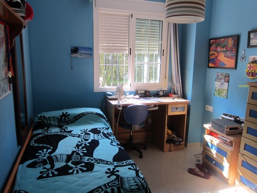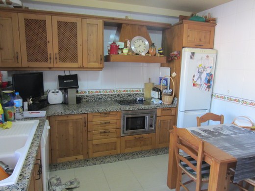 3 double bedrooms, 3 bathrooms (one en-suite), 3 terraces (total 92m2) with morning and afternoon sun and access to the pool area. Square family size kitchen (fully equipped) with laundry room and exit to terrace with barbecue area. White double glazed windows, security bars, open fire place, preinstal. alarm and aircon, Modern beige ceramic flooring. Comes with two underground parking places with direct access to the house and 16m2 storage room under one of the terraces (would make a fitness room, workshop, bodega or summer apartment.
