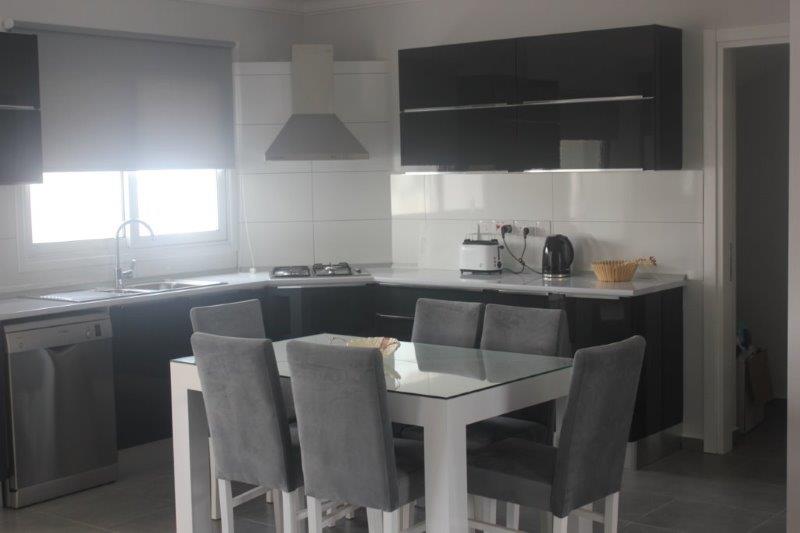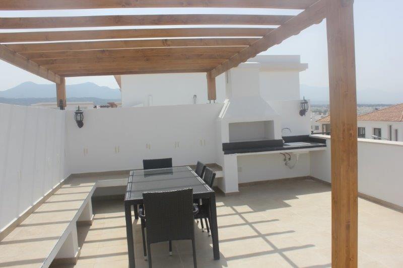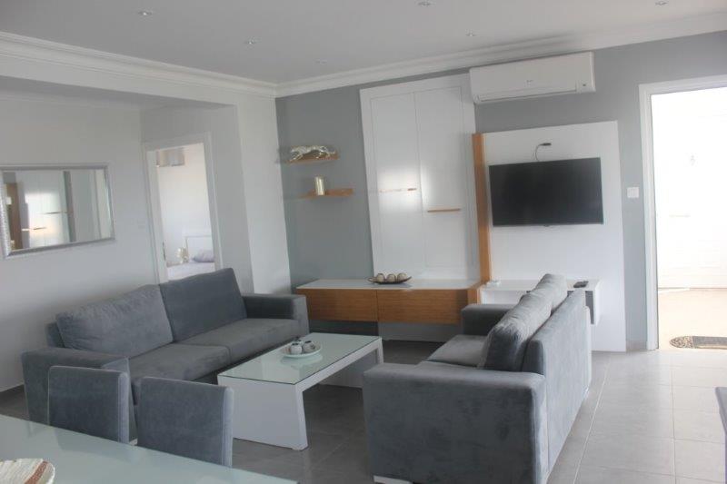 В ванной комнате большая и удобная душевая кабина.Кухня имеет открытую планировку и оборудована всем необходимым. В гостиной  и столовой есть удобные, большие диваны.  Так же имеется еще одна ванная комната с душевой кабиной. Все комнаты оснащены кондиционерами. Открытая терраса для отдыха на свежем воздухе находиться на крыше. Терраса оснащена встроенным барбекю и раковиной, что позволяет насладиться едой на свежем воздухе с великолепным видом на закат и море Кроме этого на крыше есть шезлонги для принятия солнечных ванн и душ. В апартаментах есть спутниковое телевидение и  WiFi. Блок “Б“ расположен рядом с большим бассейном в удалении от дороги.