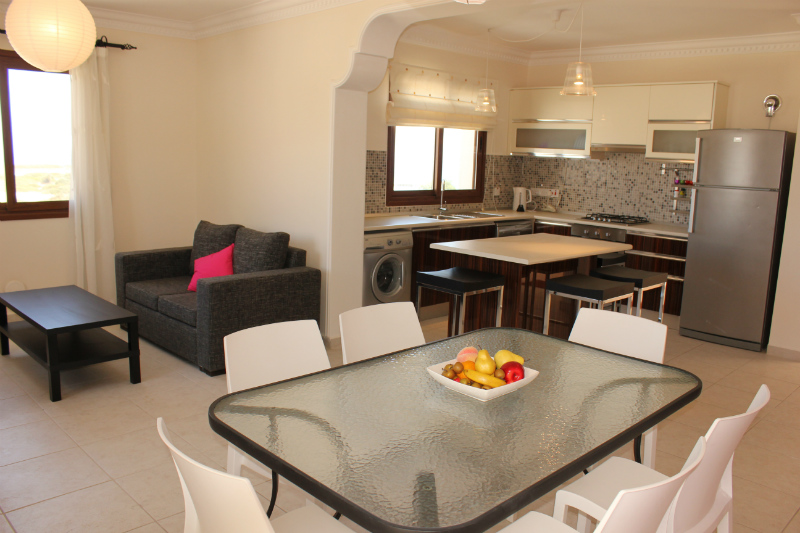Светлая и просторная 1-комнатная квартира находится в популярном комплексе Sea Magic, с хорошо развитой инфраструктурой, на берегу моря. Спальня с двуспальной кроватью с кондиционером.  Отдельная ванная комната с душевой кабиной. В квартире нет телевизора, но есть  беспроводной интернет с доступом к ноутбуку. В квартире есть просторная крытая терраса на свежем воздухе с прекрасным видом на море и горы.