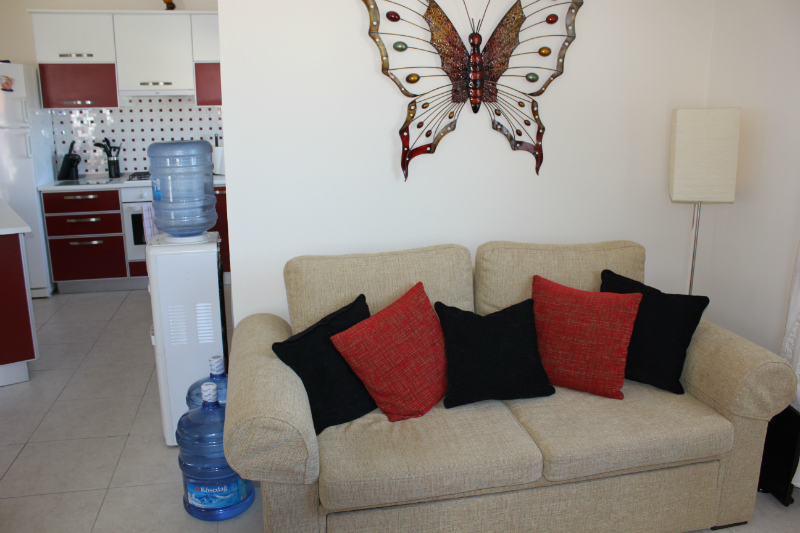 Светлая и просторная 1-комнатная квартира находится в популярном комплексе Sea Magic, с хорошо развитой инфраструктурой, на берегу моря. Спальня с двумя односпальными кроватями с кондиционером.  Отдельная ванная комната с душевой кабиной.  В гостиной есть диван кровать. В квартире есть просторная крытая терраса на свежем воздухе с прекрасным видом на море и горы.