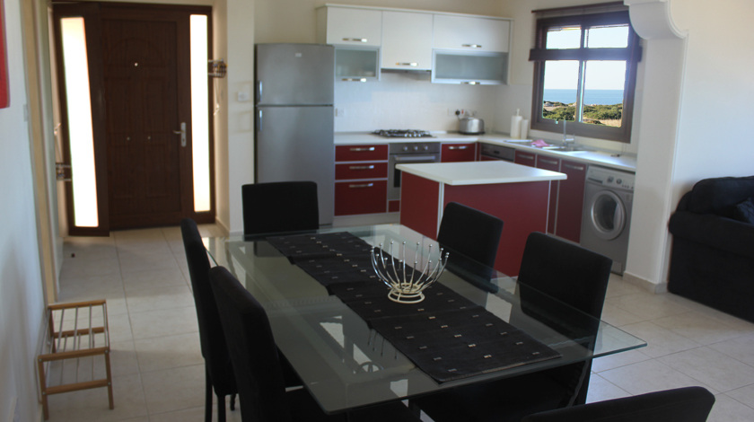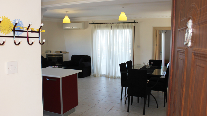 Светлая и просторная квартира с садом и прекрасным видом на море, горы  с большой террасой. Имеет 4 спальных места. В одной спальне  двухспальная кровать, в другой спальне 2 односпальные кровати, одна из спален имеет приватную ванную комнату. В ванной комнате большая и удобная душевая кабина.Кухня имеет открытую планировку и оборудована всем необходимым. В гостиной  и столовой есть удобные, большие диваны.  Так же имеется еще одна ванная комната с душевой кабиной. Все комнаты оснащены кондиционерами. Открытая терраса на крыше для отдыха на свежем воздухе, что позволяет насладиться едой на свежем воздухе с великолепным видом на закат и море.