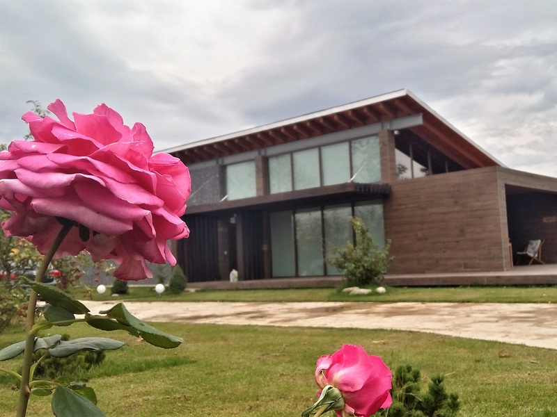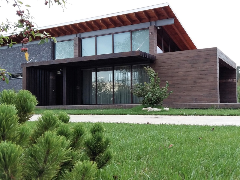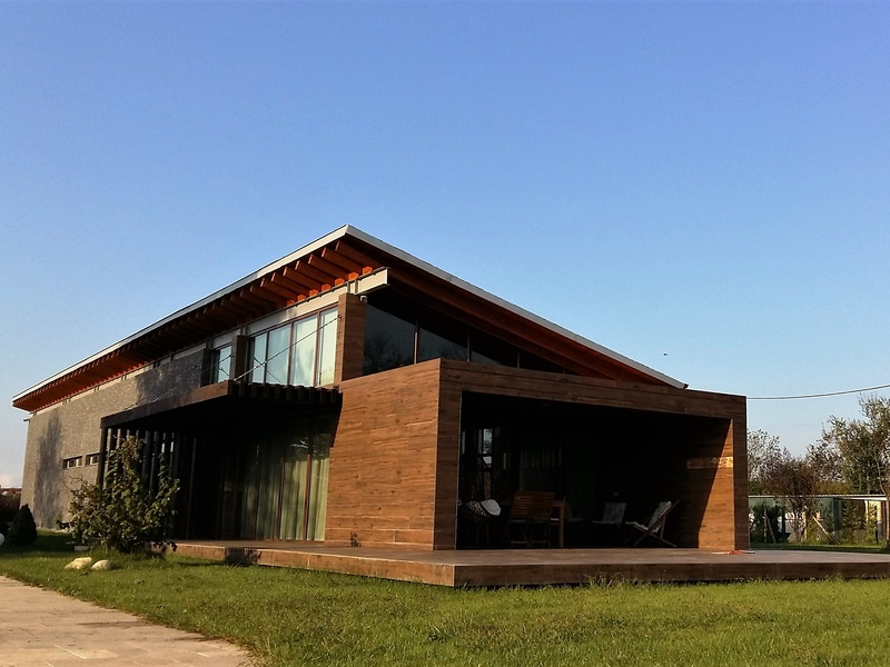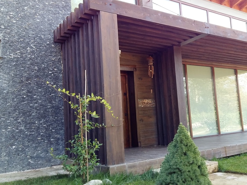The residence was especially developed as a retreat from noise and stress of urban life. The house has a linear distribution and is constructed in two functionally seperated zones. The public areas facing the main terrace and private zone accessed through a special corridor. The contemporary residence is constructed with regional materials which includes stone and wood constructed along with wooden beams running through the high ceiling founds throughout the property.