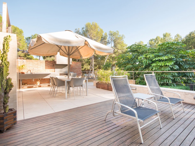 Пейзажный бассейн с морской водой и джакузи, распологается в саду , спланированному престижным дизайнером-пейзажистом, с использованием редких растений и кактусов, привезенных из Южной Америки, а также с традиционными деревьями и кустарниками Средиземноморья . Имеется зона барбекю, специально подобранной по стилю сада, и на терррассе имеется удобная мебель, для наслаждения прекрасным климатом в течение всего лета.